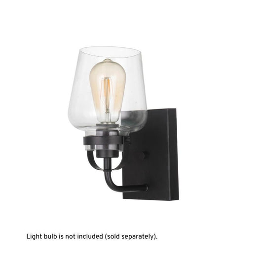Craftmade Trystan 5" x 10" 1-Light Flat Black Wall Sconce With Clear Glass Shade