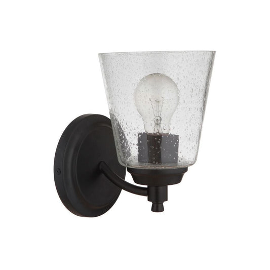 Craftmade Tyler 6" x 10" 1-Light FLat Black Wall Sconce With Clear Seeded Glass Shade