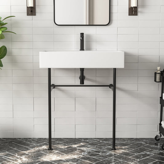 DeerValley 30" Rectangular White Ceramic Console Bathroom Sink With Black Legs and Single Faucet Hole