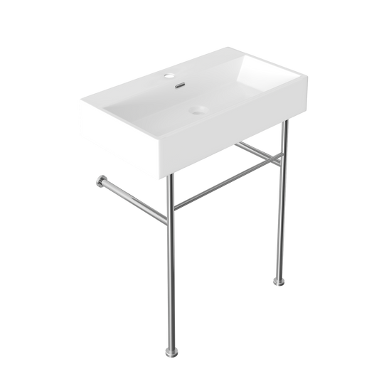DeerValley 30" Rectangular White Ceramic Console Bathroom Sink With Silver Legs and Single Faucet Hole