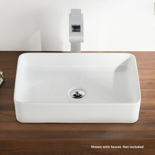 DeerValley Ally White Ceramic Sleek Rectangular Bathroom Vessel Sink