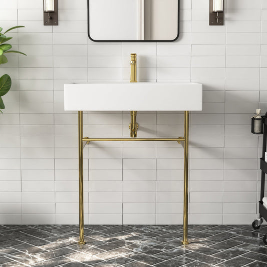 DeerValley 30" Rectangular White Ceramic Console Bathroom Sink With Gold Legs and Single Faucet Hole