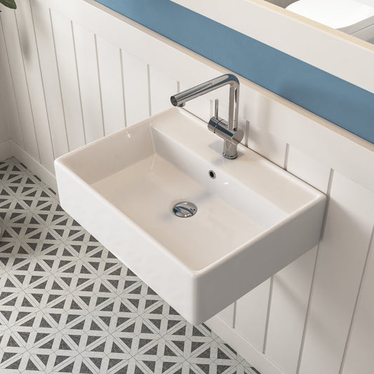 DeerValley 23" Rectangular White Wall-Mounted Bathroom Sink With Overflow Hole