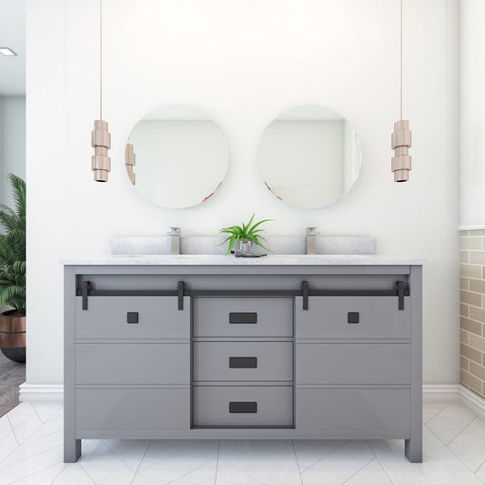 Duko Venice 60" Wooden Vanity Set With White Cararra Marble Tabletop, Rectangular Double Basin and Drawer Cabinet Gray