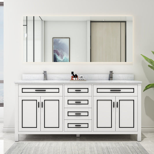 Duko Venice 72" Wooden Vanity Set With White Cararra Marble Tabletop, Rectangular Double Basin and Drawer Cabinet White