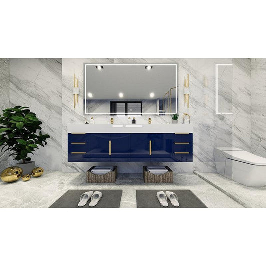 Moreno Bath Bethany 72" High Gloss Night Blue Wall-Mounted Vanity With Double Reinforced White Acrylic Sinks