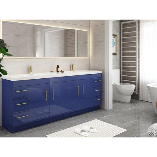 Moreno Bath ELSA 84" High Gloss Night Blue Freestanding Vanity With Double Reinforced White Acrylic Sinks