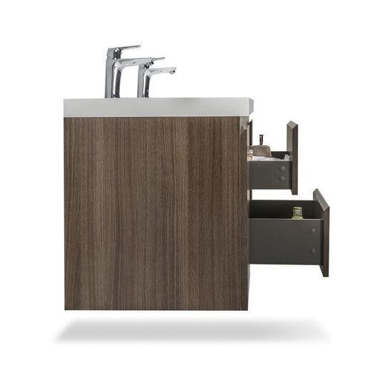 TONA Angela 72" White & Gray Oak Wall-Mounted Bathroom Vanity With Faux Marble Integrated Top & Double Sink