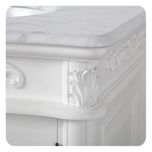 Silkroad Exclusive 72" Double Sink Antique White Bathroom Vanity With Carrara White Marble Countertop and White Ceramic Undermount Sink