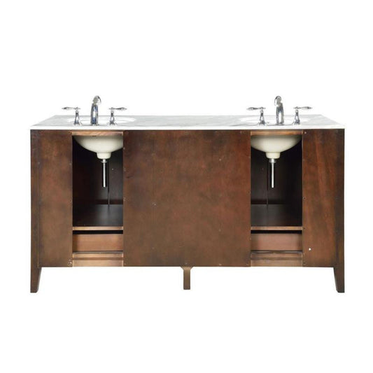 Silkroad Exclusive 60" Double Sink Dark Espresso Bathroom Vanity With Crema Marfil Marble Countertop and White Ceramic Undermount Sink