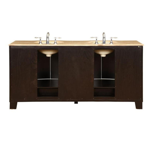 Silkroad Exclusive 72" Double Sink Dark Espresso Bathroom Vanity With Travertine Countertop and Ivory Ceramic Undermount Sink