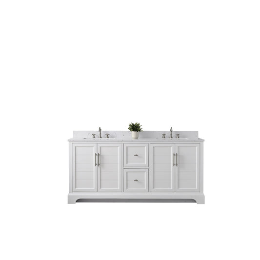 Vanity Art Vannes 72" Double White Freestanding Vanity Set With Engineered Marble Countertop and Integrated Sink