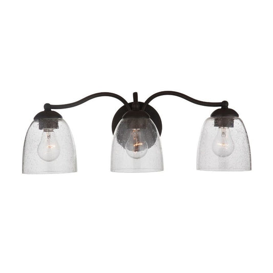 Craftmade Tyler 23" 3-Light FLat Black Vanity Light With Clear Seeded Glass Shades