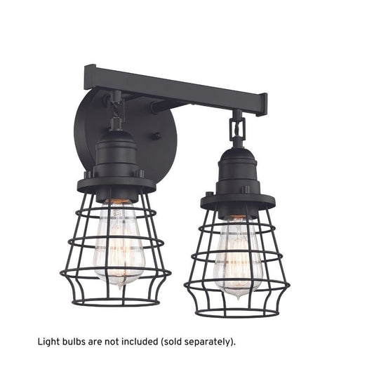 Craftmade Thatcher 12" 2-Light Flat Black Vanity Light With Metal Wire Shades