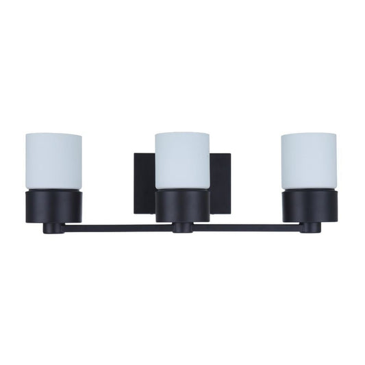 Craftmade District 22" 3-Light Flat Black Vanity Light With White Opal Glass Shades