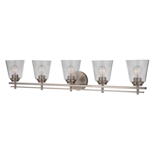 Craftmade Drake 42" 5-Light Brushed Polished Nickel Vanity Light With Clear Seeded Glass Shades