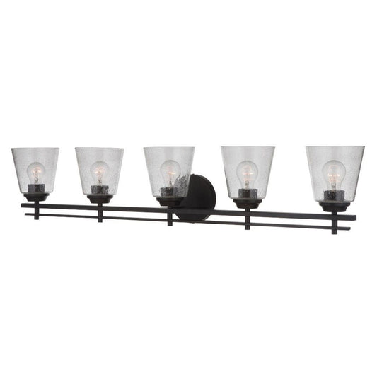 Craftmade Drake 42" 5-Light Flat Black Vanity Light With Clear Seeded Glass Shades