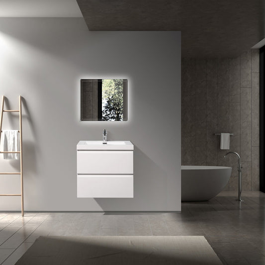 Duko Angela 24" With White Single Basin and Drawer Cabinet High Glossy White Wooden Vanity Set