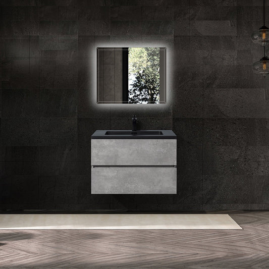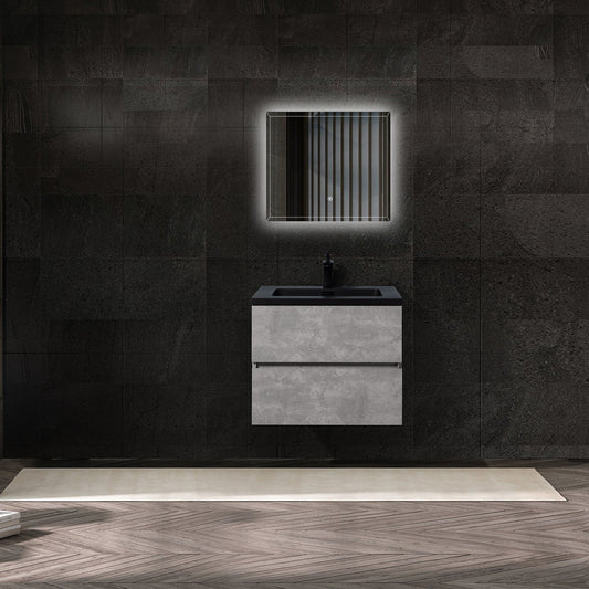 Duko Edi 30" Wooden Vanity Set With Black Single Basin and Drawer Cabinet Cement Gray