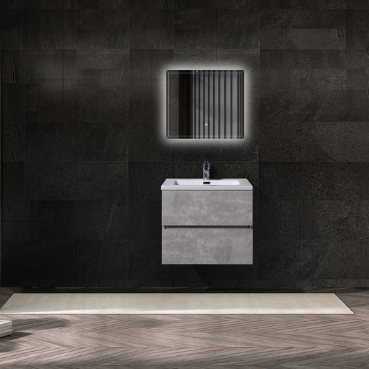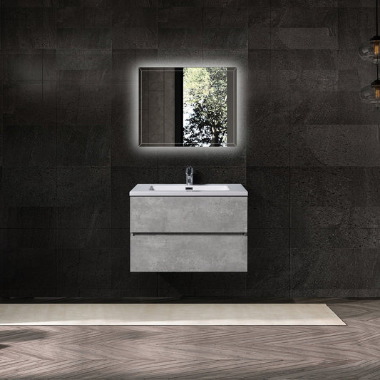 Duko Edi 30" Wooden Vanity Set With White Single Basin and Drawer Cabinet Cement Gray