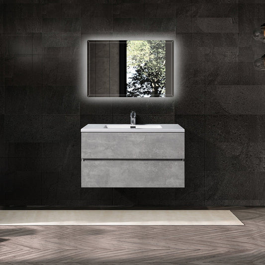 Duko Edi 36" Wooden Vanity Set With White Single Basin and Drawer Cabinet Cement Gray