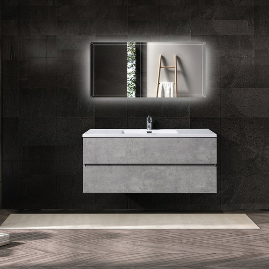 Duko Edi 48" With White Single Basin and Drawer Cabinet Cement Gray Wooden Vanity Set
