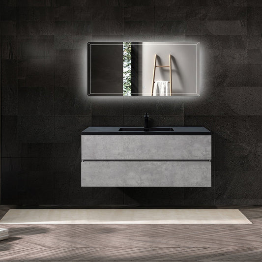Duko Edi 48" Wooden Vanity Set With Black Single Basin and Drawer Cabinet Cement Gray
