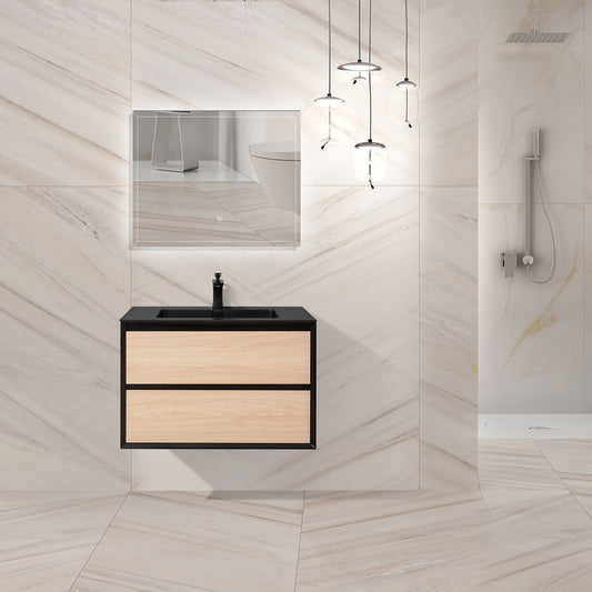 Duko Expect 30" Wooden Vanity Set With Black Single Basin and Drawer Cabinet Natural Oak