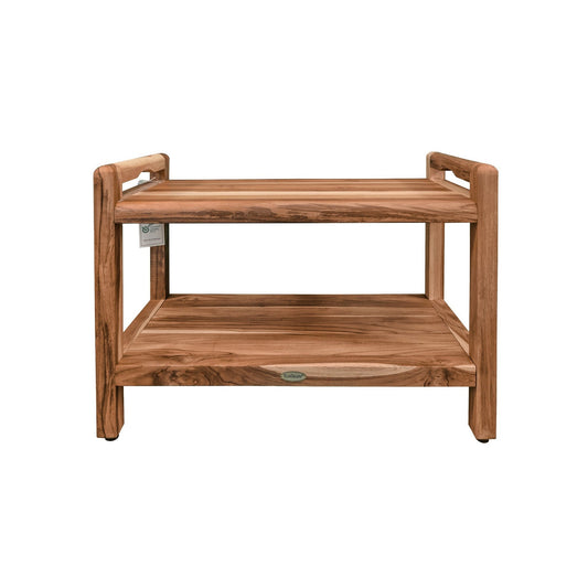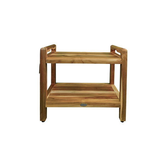 EcoDecors Eleganto 24" EarthyTeak Solid Teak Wood Shower Bench With LiftAide Arms and Shelf