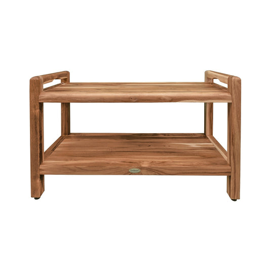 EcoDecors Satori 28" EarthyTeak Solid Teak Wood Shower Bench With Shelf