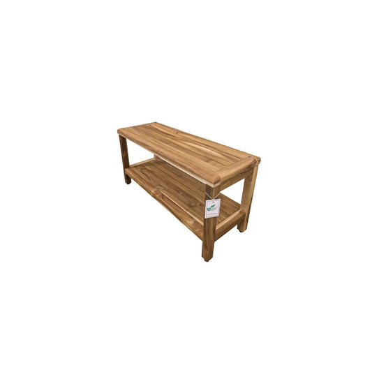 EcoDecors Eleganto EarthyTeak 35" Solid Teak Wood Shower Bench With Shelf