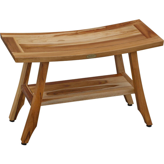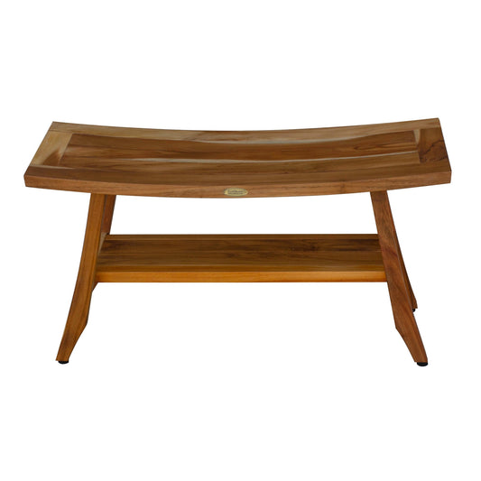 EcoDecors Satori 34" EarthyTeak Solid Teak Wood Shower Bench With Shelf