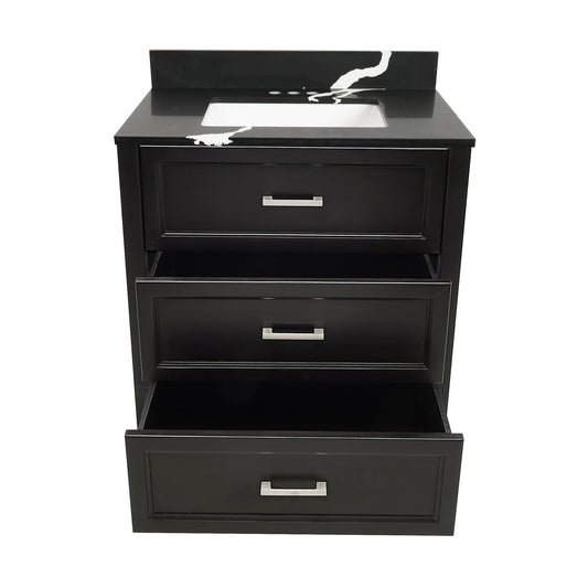 Ella's Bubbles Zermatt 31" Espresso Bathroom Vanity With Calacatta Black Quartz Stone Top With Backsplash and Sink