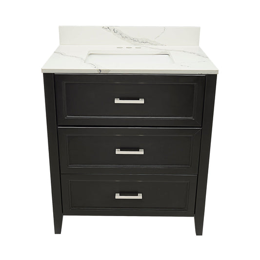 Ella's Bubbles Zermatt 31" Espresso Bathroom Vanity With Calacatta White Quartz Stone Top With Backsplash and Sink