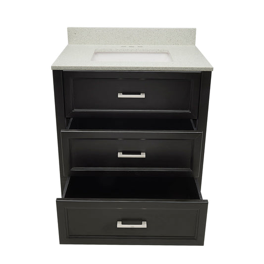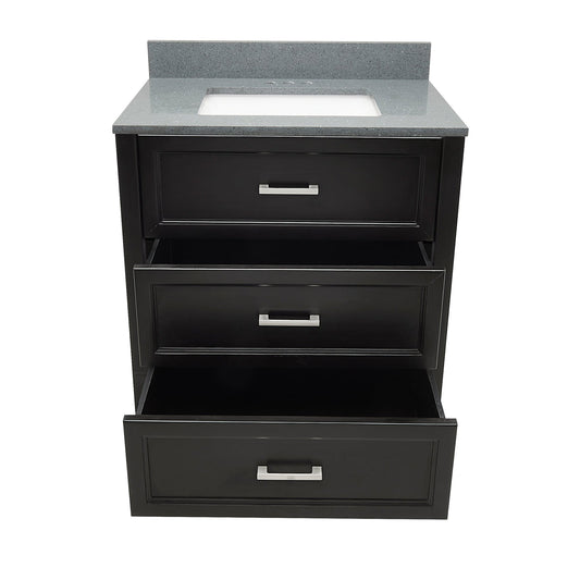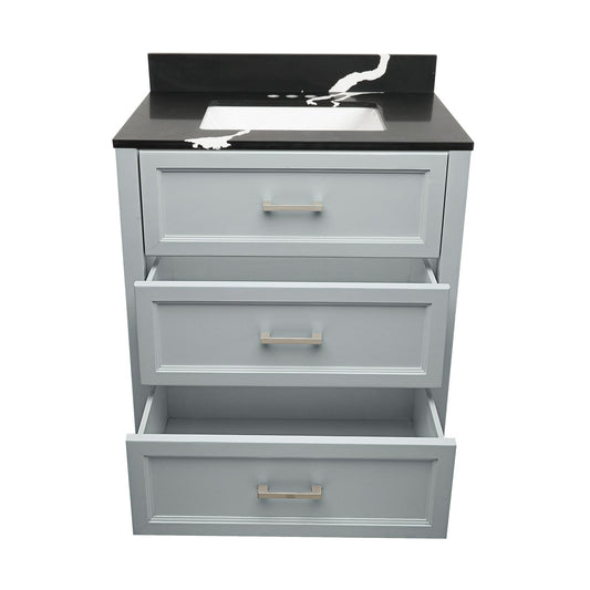 Ella's Bubbles Zermatt 31" Gray Bathroom Vanity With Galaxy Black Quartz Stone Top With Backsplash and Sink