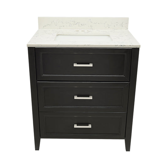 Ella's Bubbles Zermatt 31" White Bathroom Vanity With Calacatta Black Quartz Stone Top With Backsplash and Sink