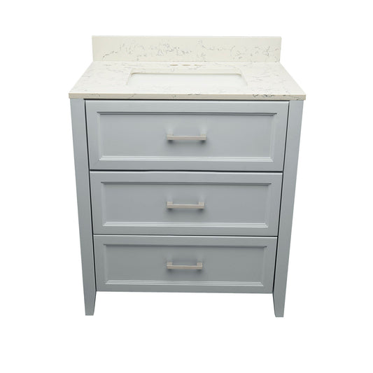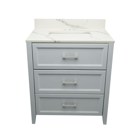 Ella's Bubbles Zermatt 31" Gray Bathroom Vanity With Calacatta White Quartz Stone Top With Backsplash and Sink