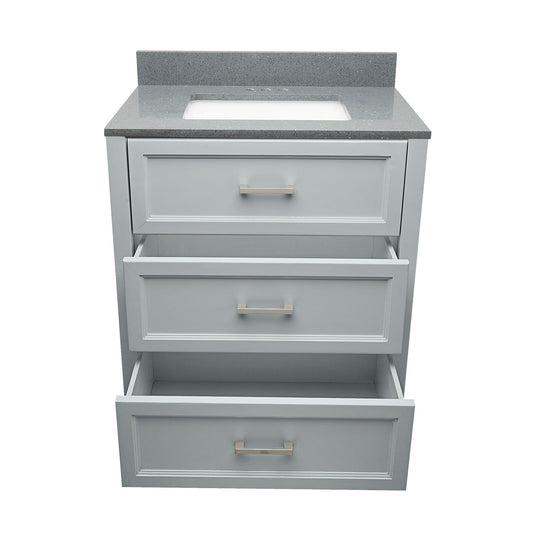 Ella's Bubbles Zermatt 31" Gray Bathroom Vanity With Galaxy Gray Quartz Stone Top With Backsplash and Sink
