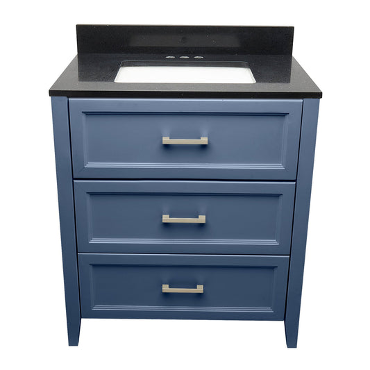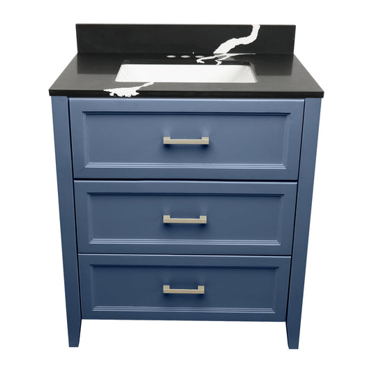Ella's Bubbles Zermatt 31" Navy Blue Bathroom Vanity With Galaxy Black Quartz Stone Top With Backsplash and Sink