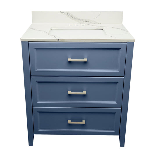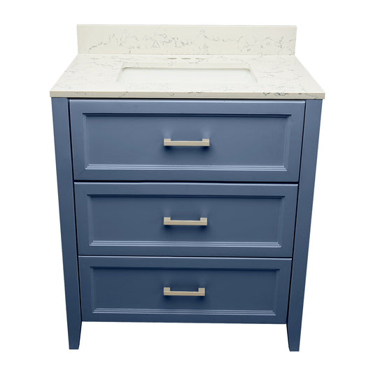 Ella's Bubbles Zermatt 31" Navy Blue Bathroom Vanity With Calacatta White Quartz Stone Top With Backsplash and Sink