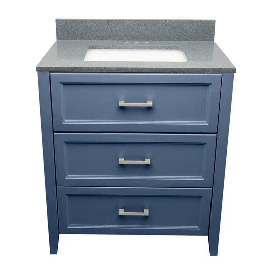 Ella's Bubbles Zermatt 31" Navy Blue Bathroom Vanity With Galaxy Gray Quartz Stone Top With Backsplash and Sink
