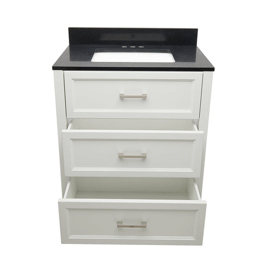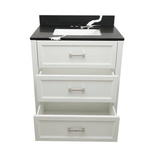 Ella's Bubbles Zermatt 31" White Bathroom Vanity With Galaxy Black Quartz Stone Top With Backsplash and Sink