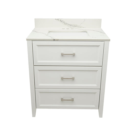 Ella's Bubbles Zermatt 31" White Bathroom Vanity With Calacatta White Quartz Stone Top With Backsplash and Sink