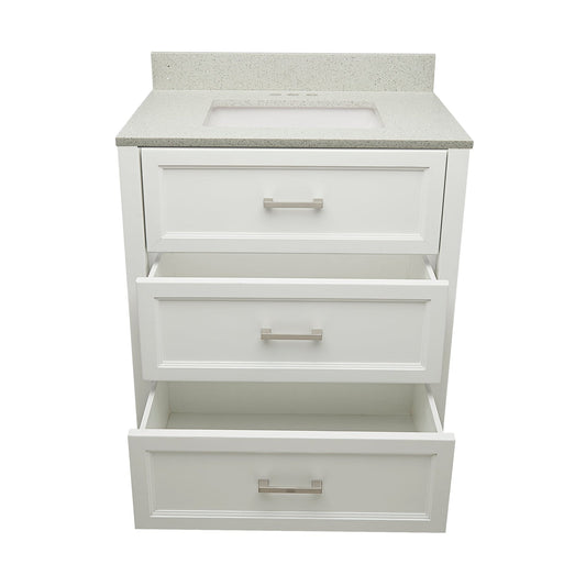Ella's Bubbles Zermatt 31" White Bathroom Vanity With Galaxy Gray Quartz Stone Top With Backsplash and Sink