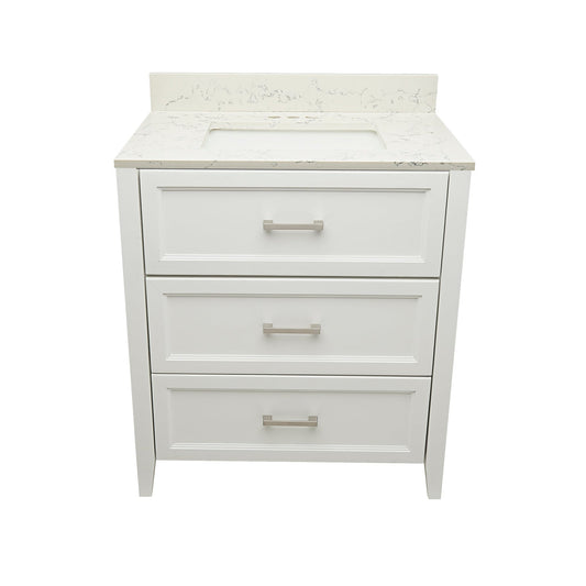 Ella's Bubbles Zermatt 31" White Bathroom Vanity With Galaxy White Quartz Stone Top With Backsplash and Sink
