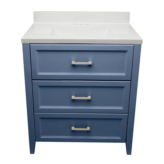 Ella's Bubbles Zermatt 31" Navy Blue Bathroom Vanity With White Cultured Marble Top With Backsplash and Sink