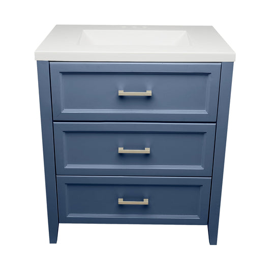 Ella's Bubbles Zermatt 31" Navy Blue Bathroom Vanity With White Cultured Marble Top and Sink