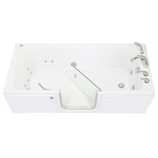Ella's Bubbles Transfer 30" x 52" White Acrylic Air and Hydro Massage Walk-In Bathtub With 2-Piece Fast Fill Faucet, 2" Dual Drain and Right L-Shape Outswing Door
