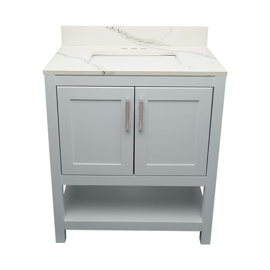 Ella's Bubbles Taos 31" Gray Bathroom Vanity With Calacatta White Quartz Stone Top With Backsplash and Sink