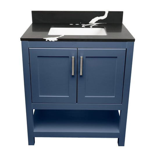 Ella's Bubbles Taos 31" Navy Blue Bathroom Vanity With Calacatta Black Quartz Stone Top With Backsplash and Sink